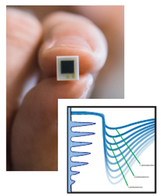 SiPMs are solid-state, semiconductor devices. Consisting of a compact array of avalanche photodiodes operating in unison, SiPM is a detector with photon counting capability. An innovative optical design in the NovoCyte flow cytometers incorporates up to 30 independent SiPM for collecting and processing signals for each of its fluorescence channels.